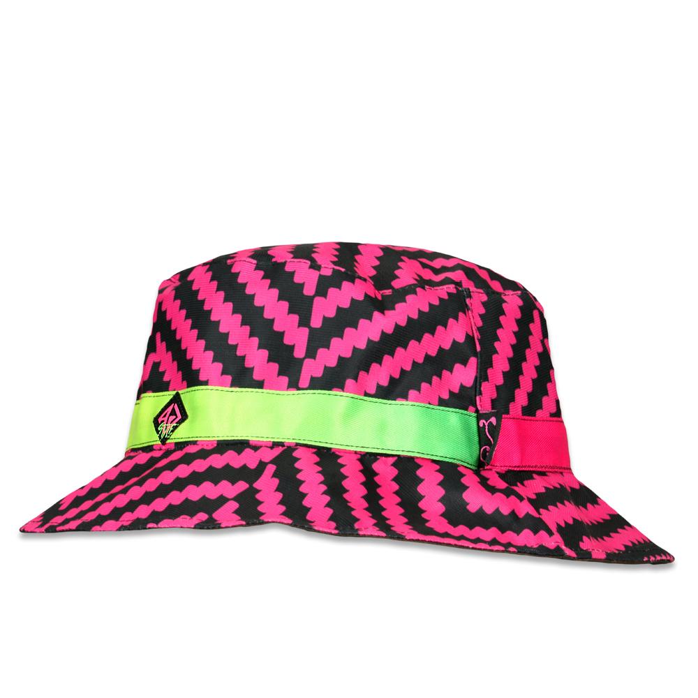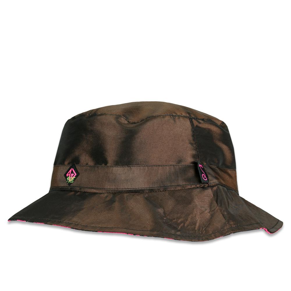 The concept of this reversible bucket hat was brought to us by Adam G when discussing his most recent collaborative ideas. We took some components from a variety of jackets he brought in and developed our own unique anorak and this matching reversible bucket hat. With the iridescent bronze on the outside, to the loud, pink, black and neon on the inside, this bucket screams 90s! Made from 100% polyester.