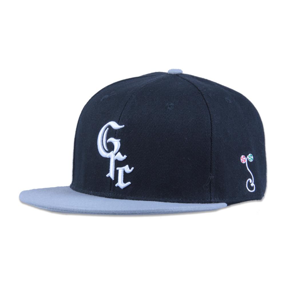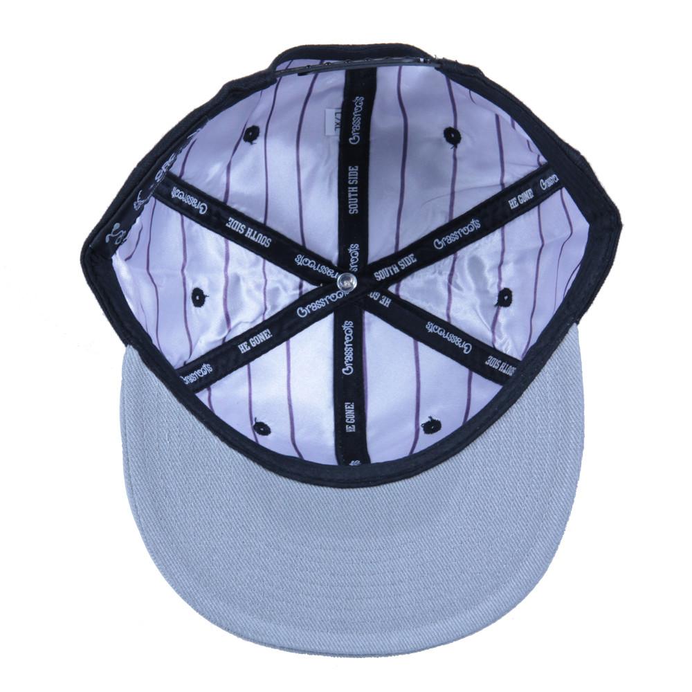 The Grassroots Chicago GRC logo is embroidered in white on the front of this black snapback hat. The brim is made of light gray corduroy. Represent your side!