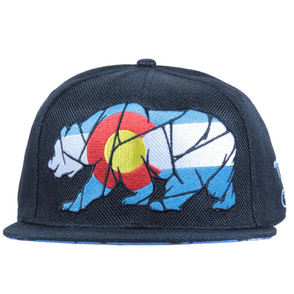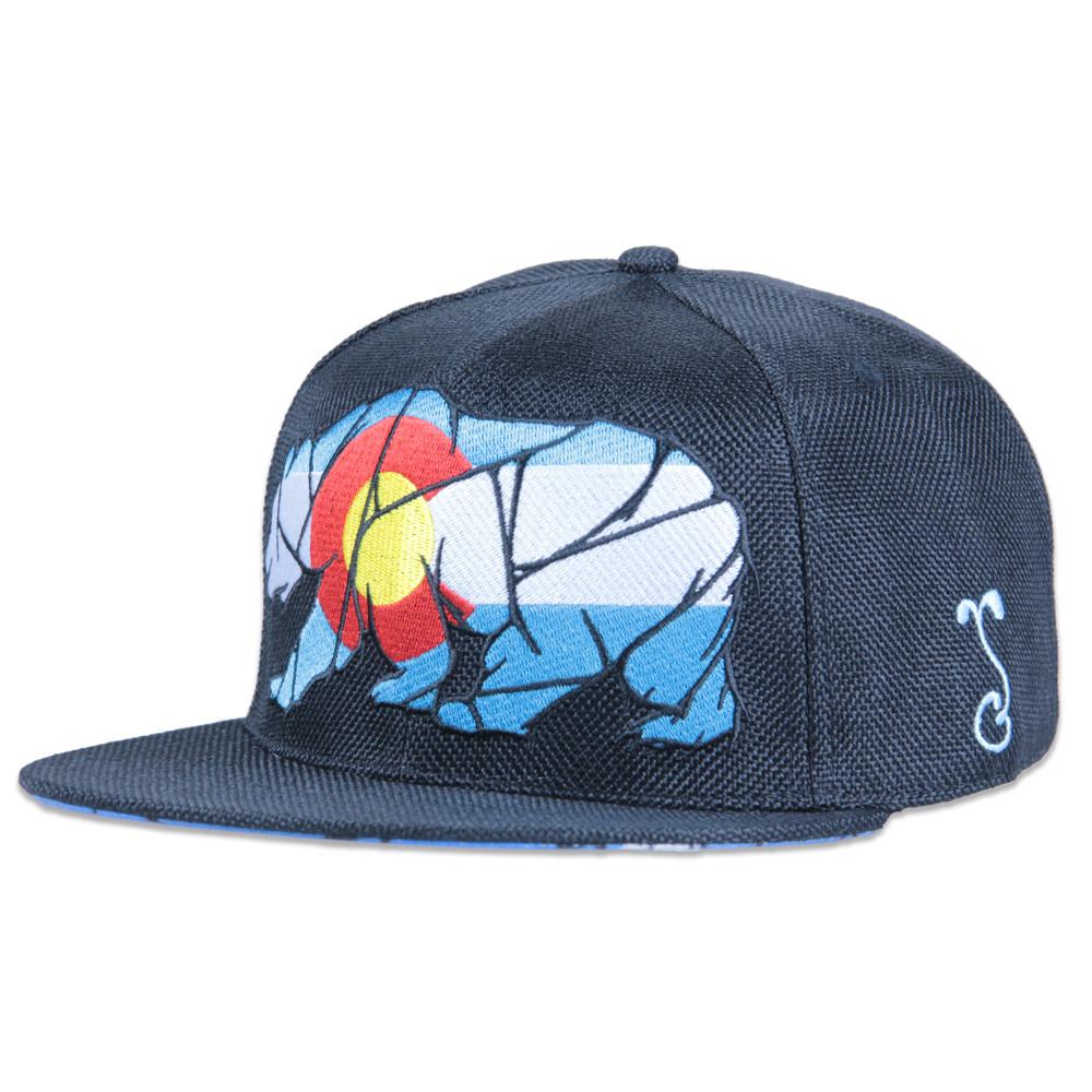 Black pearl hemp fitted hat with Colorado mosaic bear design.
