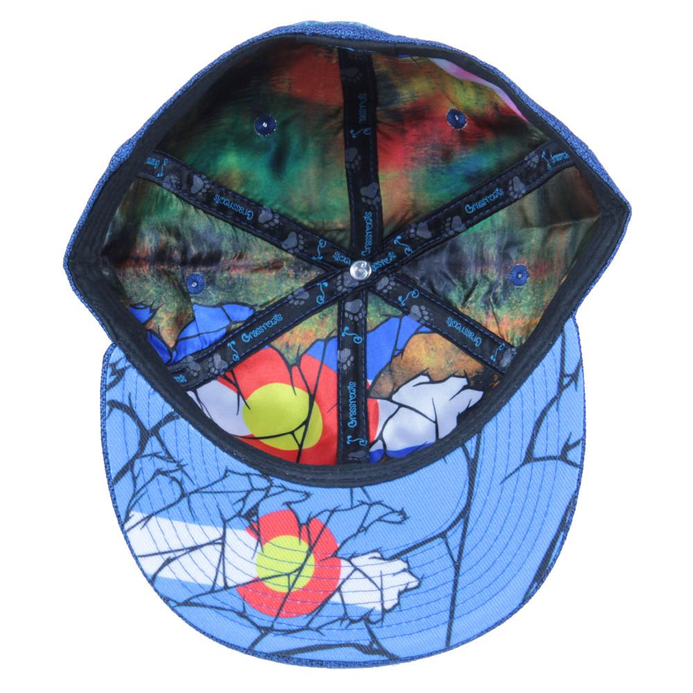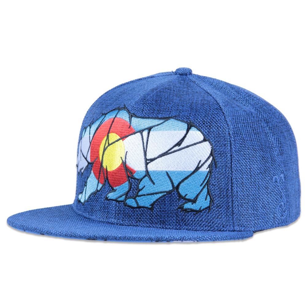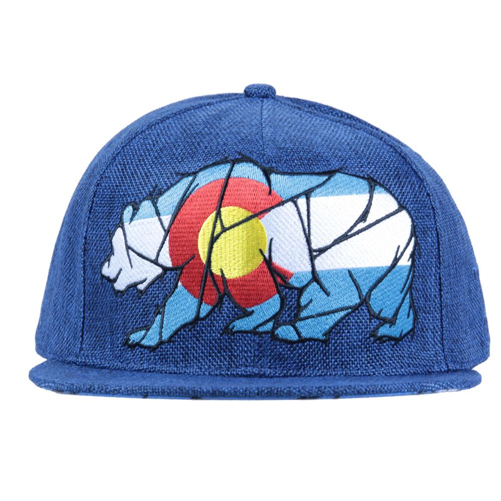 avy pearl hemp fitted hat with Colorado mosaic bear design.
