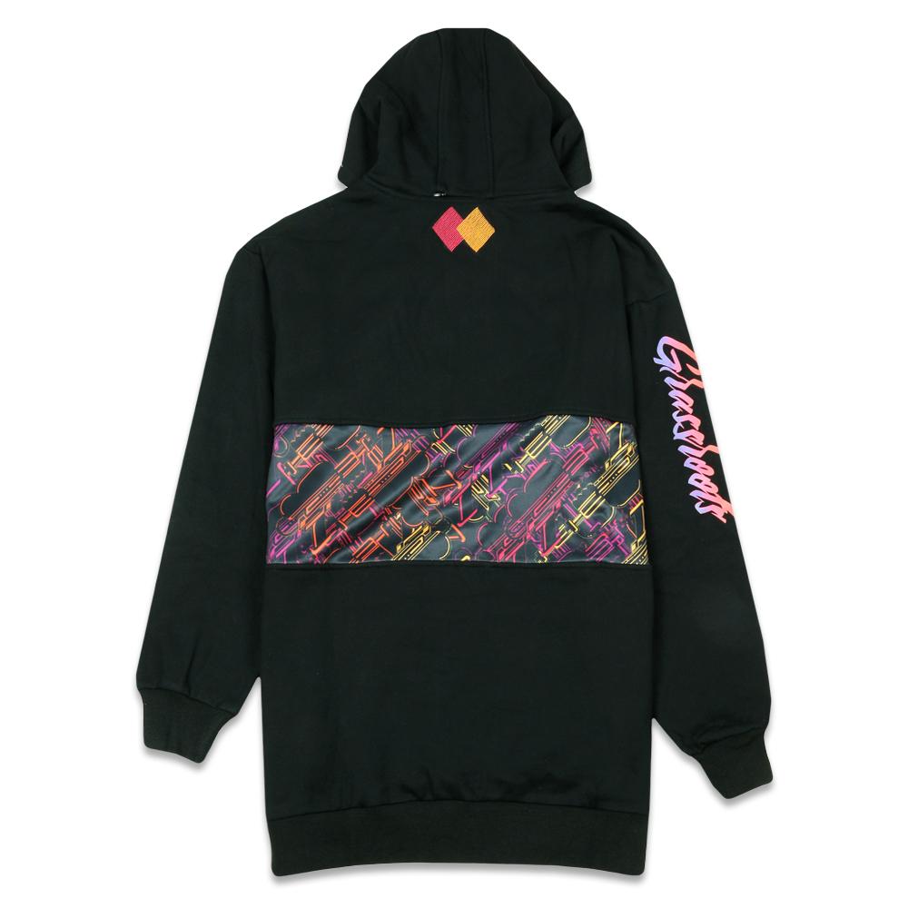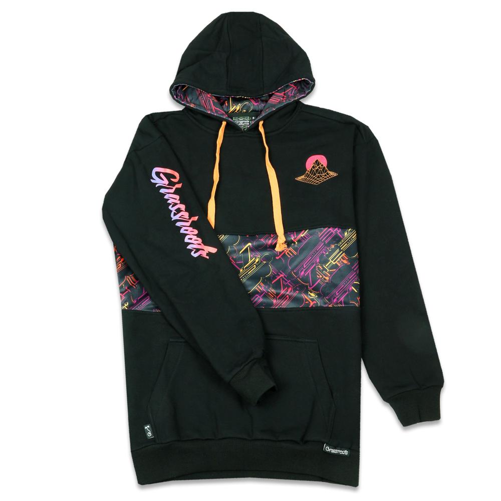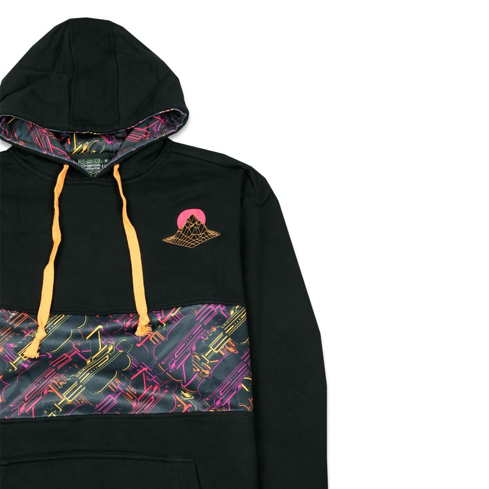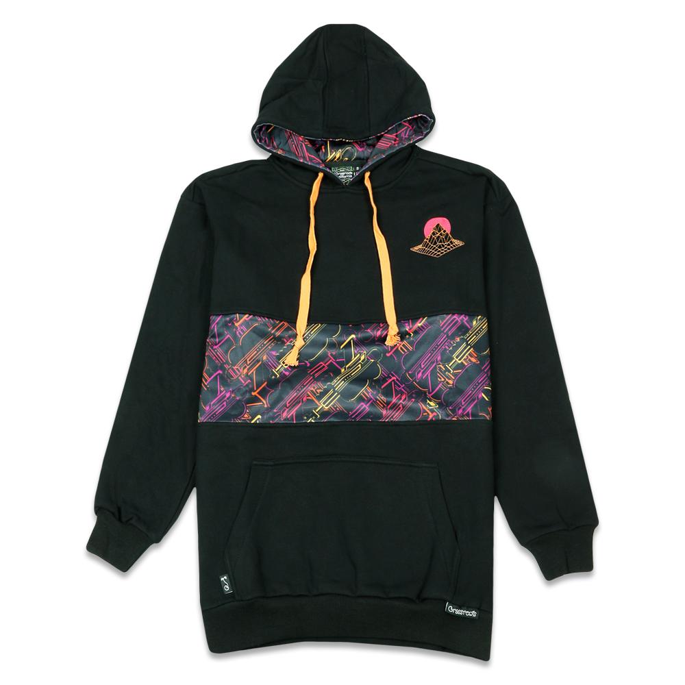 The Danger Zone collection is inspired by the retro vibes from 80s ski garb, jet skis, and arcade games! This black Tall Pullover Hoodie features our Danger Zone Super Stoker artwork on the middle panel and inside the hood. Embroidered on the chest is the low poly arcade-style mountain graphic, classic to the Danger Zone collection. There are stash pockets on the back of the neck and in the front pouch pocket. Dig this style? Check out the rest of our Danger Zone styles in the Fall/Winter 2018 collection!