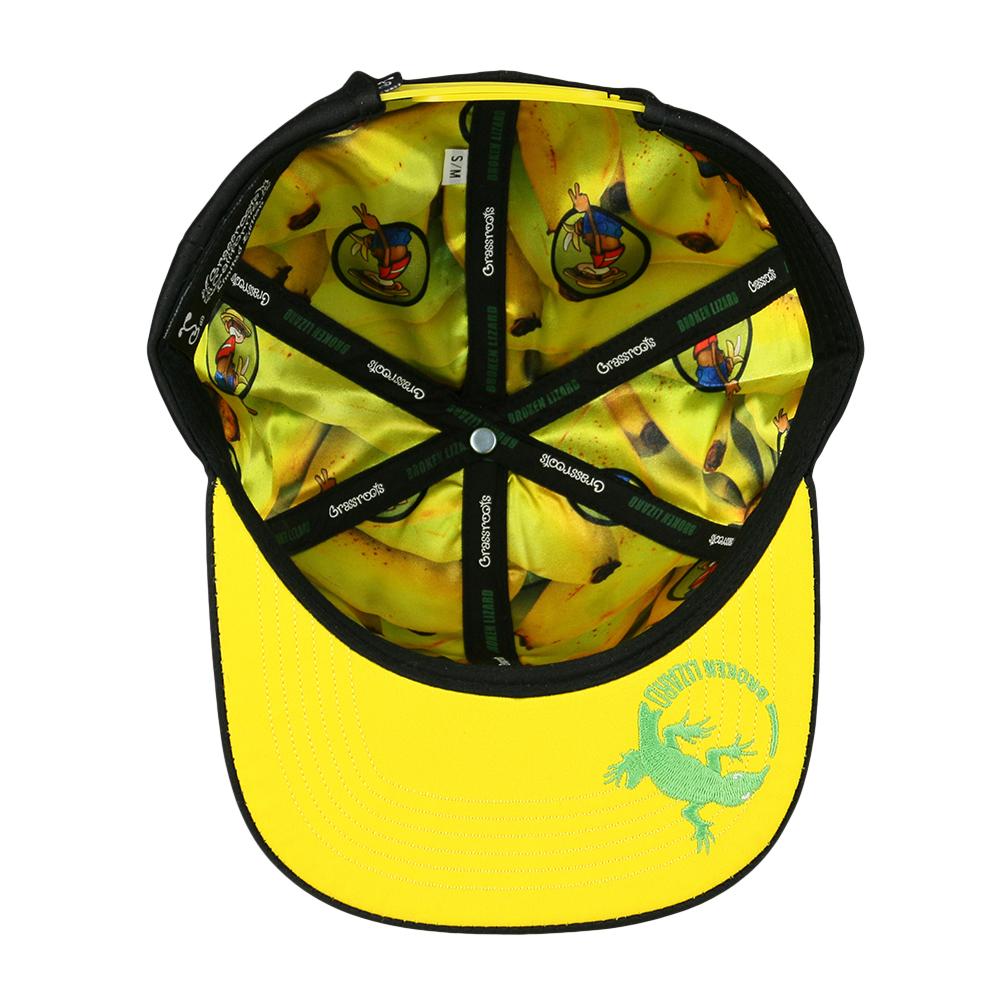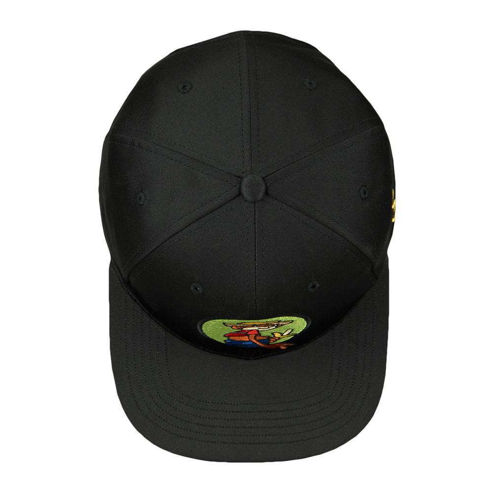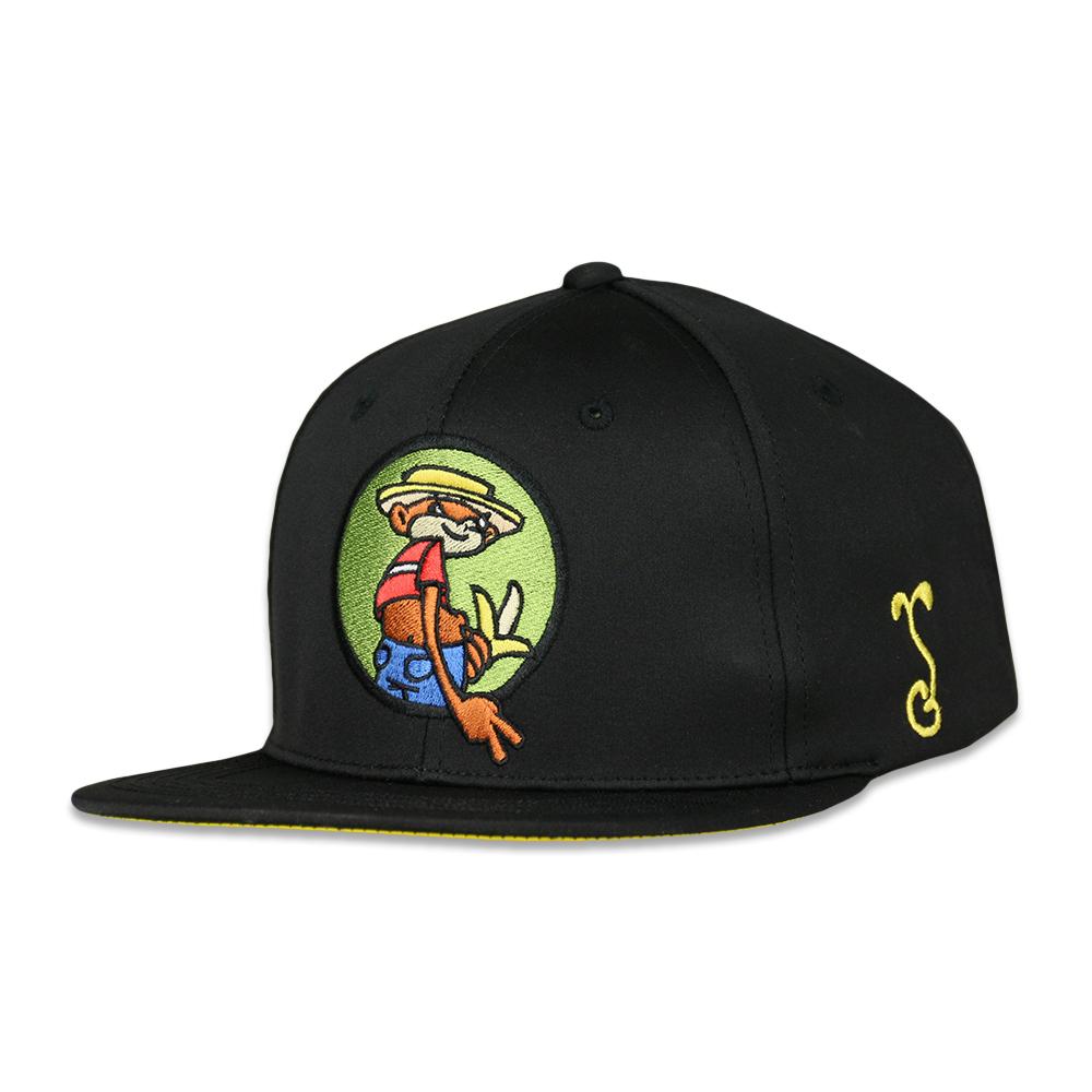 The Johnny Chimpo Dri-Bear Black Pro Fit Snapback Hat is constructed of black moisture-wicking material, features Johnny Chimpo design on the front, and has a yellow underbrim with embroidered Broken Lizard logo.