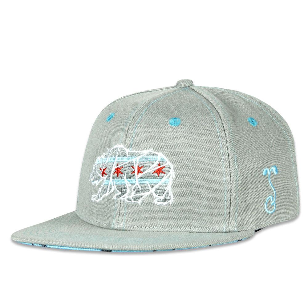 The two-size snapback features gray panels with our Chicago Mosaic Bear design and an adjustable snap closure - to accommodate growing heads.