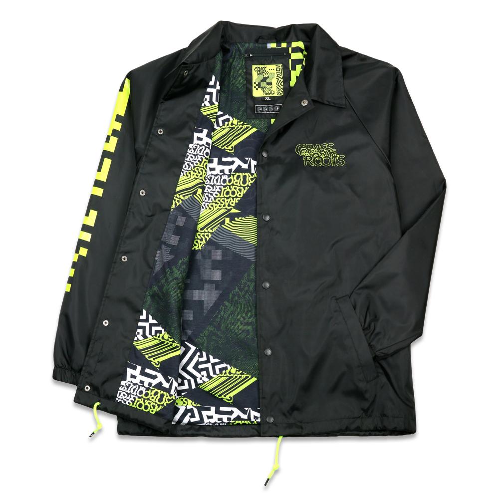 Neon Glitch Black Coaches Jacket is a part of the Neon Glitch line for Spring Summer 2019. Custom Neon Glitch Grassroots patch on the back. Limited to only 150 made. Secret Stash pocket in every jacket.