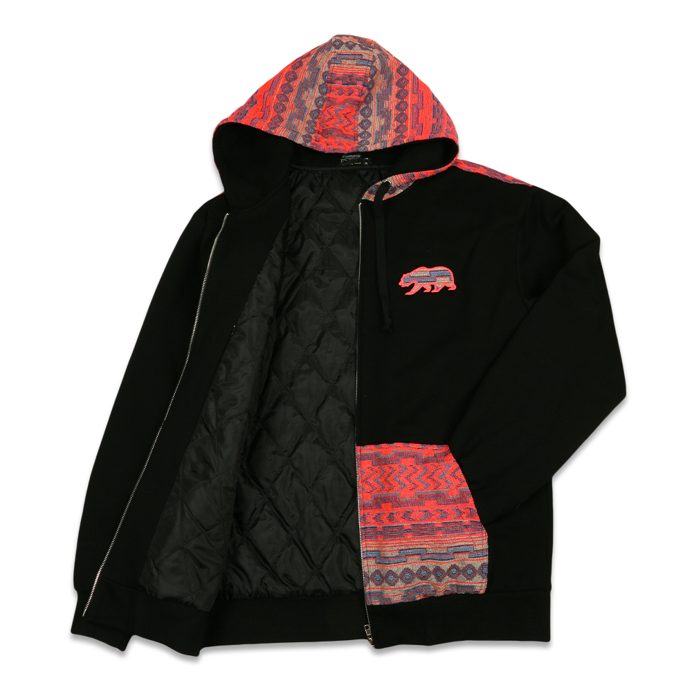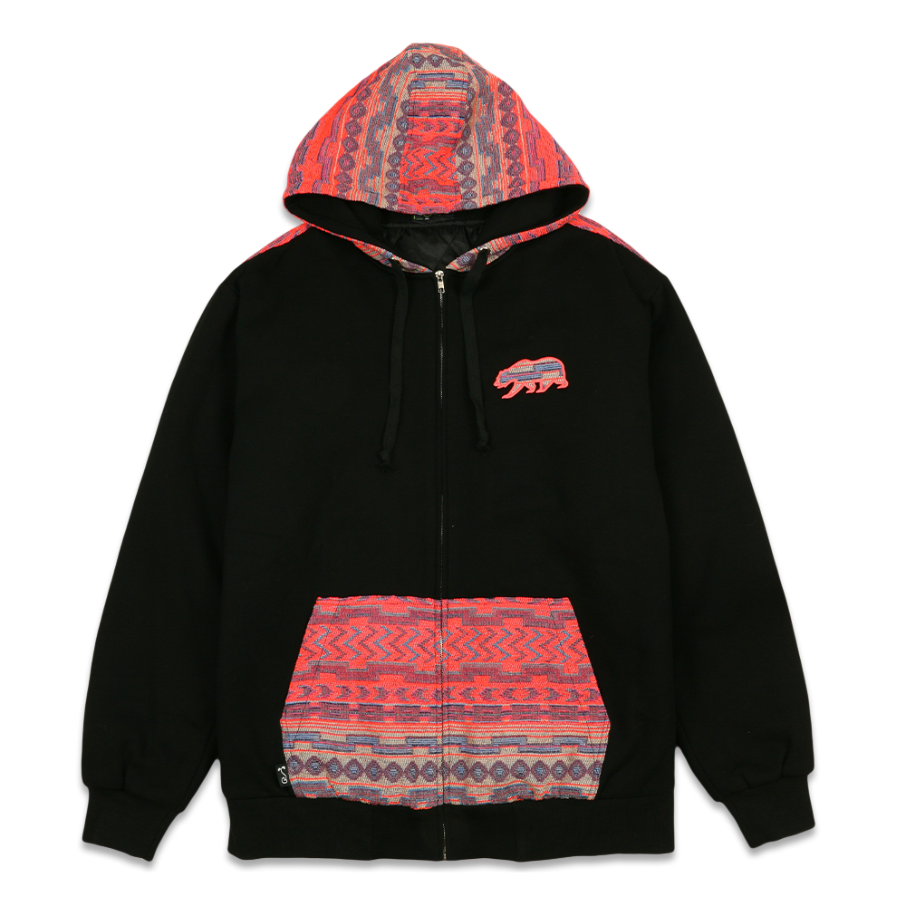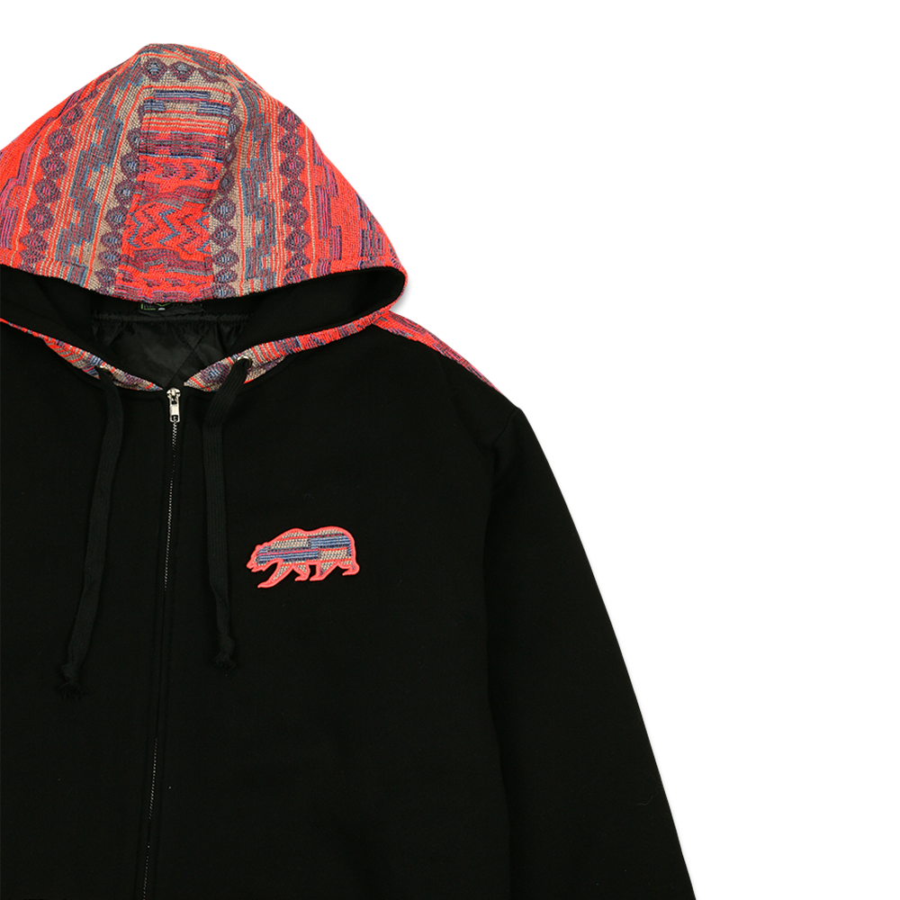 The Removable Bear Neon Beach Zip Up Hoodie features a black body with Neon Beach hood + front pockets.