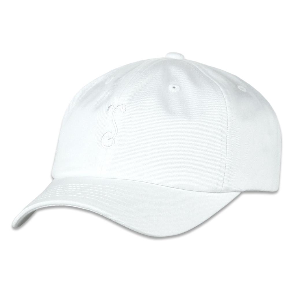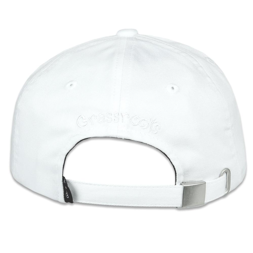 The Simply Sprouted White Dad Hat features unstructured white panels with a white G Sprout on the front, an adjustable strapback closure, & interior lining with our infamous stash pocket.