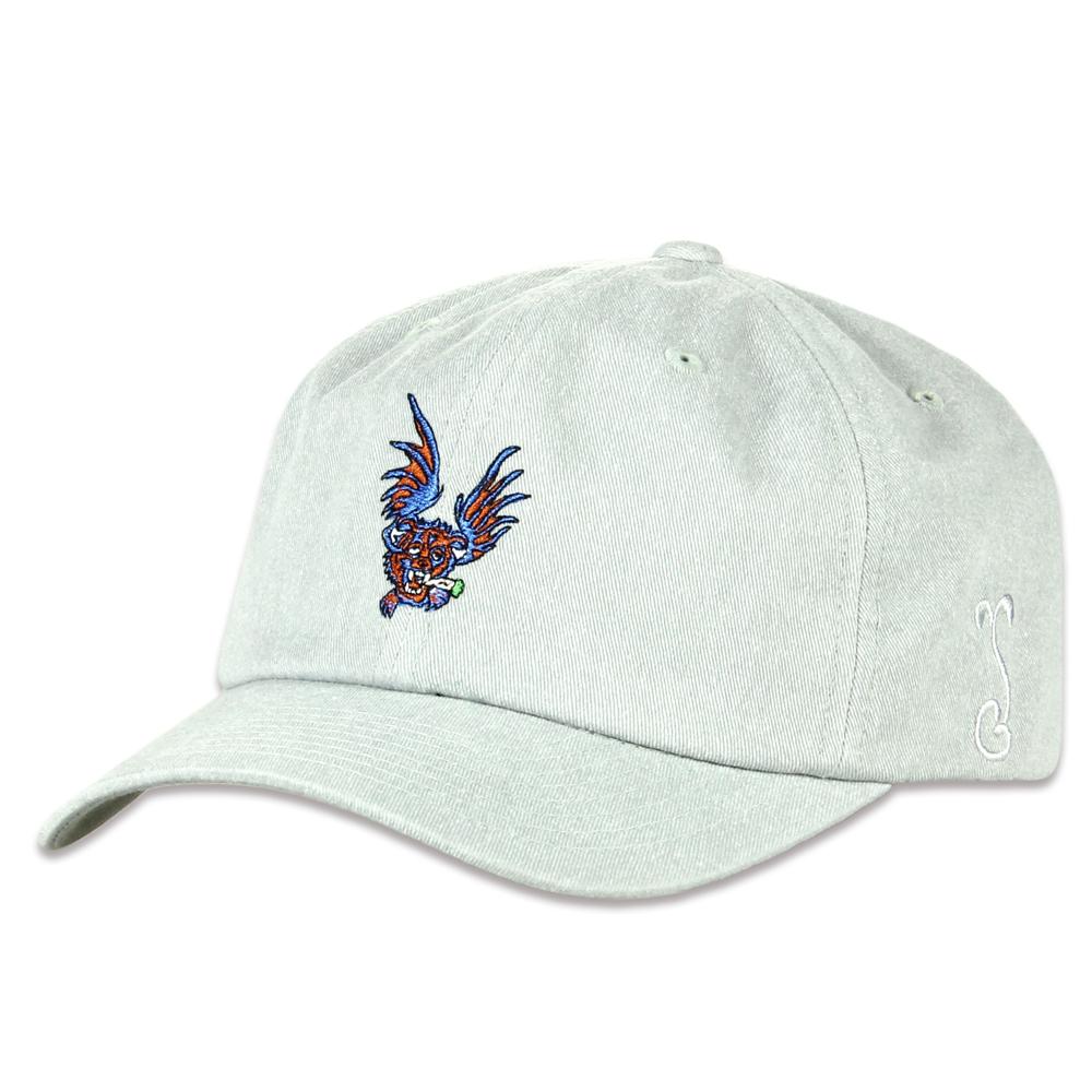 The Vincent Gordon Bear Bat Gray Dad Hat is constructed of light gray panels - featuring Vincent's Bear Bat design embroidered on the front. This adjustable, one size fits most dad hat has an adjustable strapback closure and Vincent Gordon's logo engraved on metal clasp. The interior lining showcases more of Vincent's artwork and has our infamous stash pocket.
