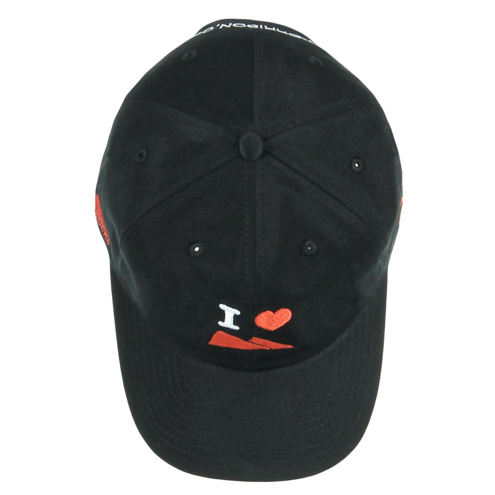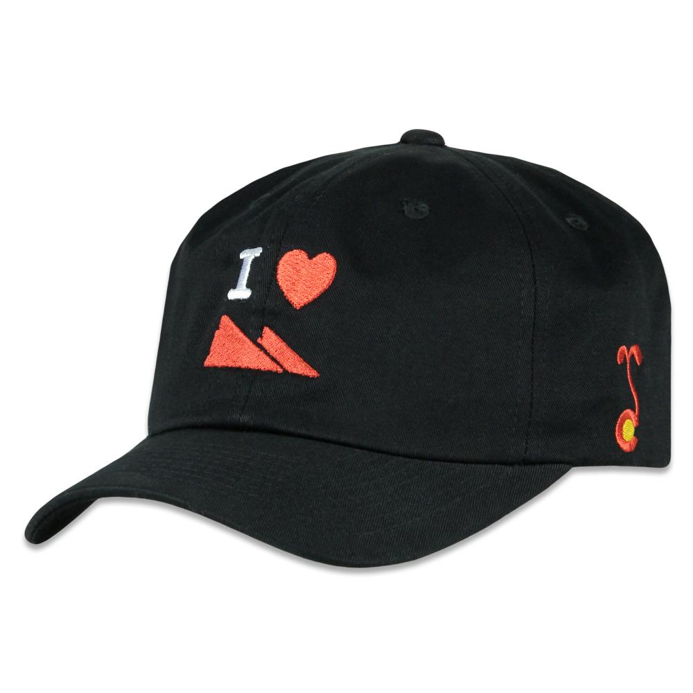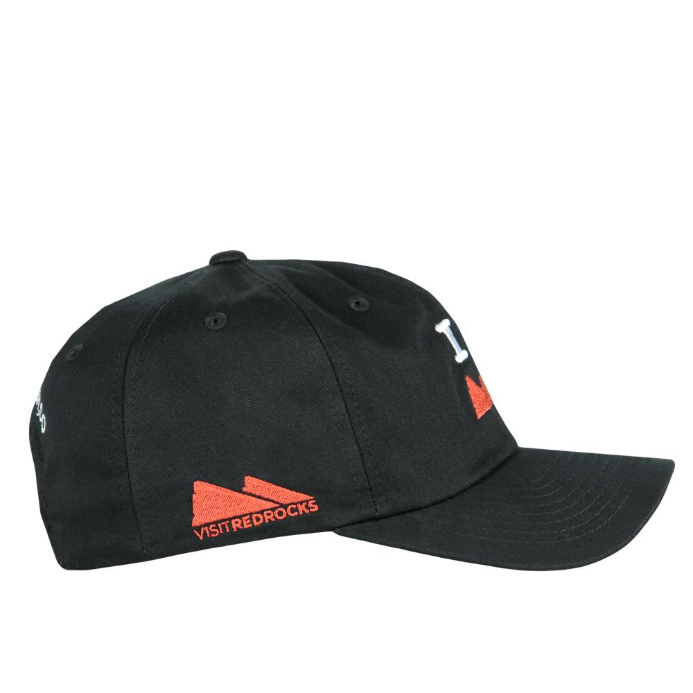 The Visit Red Rocks Black Dad Hat is constructed of black panels - featuring an I Love Red Rocks design embroidered on the front. This adjustable, one size fits most dad hat has Visit Red Rocks' logo on the side panel, Morrison, CO on the rear panels, and an adjustable snapback closure. The interior is unlined, but still has our infamous stash pocket.